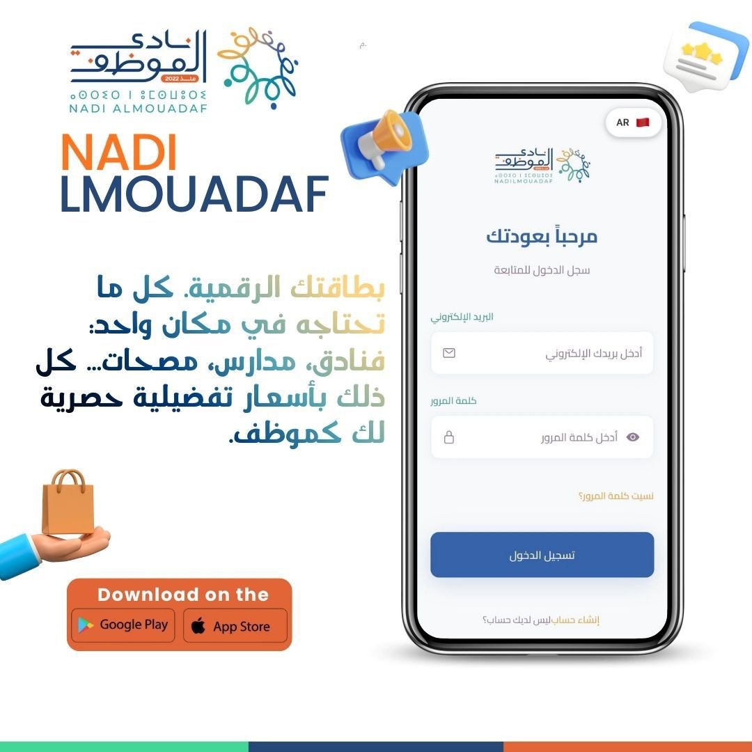 هذا التطبيق يشكّل منصة رقمية متكاملة تهدف إلى تقريب الخدمات الاجتماعية من الموظف، تسهيل الولوج إلى العروض والامتيازات، تعزيز الشفافية، وتسريع التفاعل بين المنخرطين وشركاء النادي.